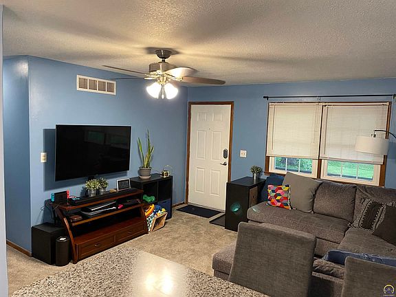 Lovely Raised Ranch home with Small Town Living in Carbondale! Main Floor Living with 3 Bedrooms, Full bath, Attached garage, Half Bath in Basement with Recreational Room/Flexible Bonus Space with built-in cabinets and ceramic tile. New Spacious Kitchen with Plenty of Storage and Areas to Prep Food - Lots of Room to Lay out Homemade Cinnamon Rolls to Bake:) (New Cabinets, Floor, Countertops, Backsplash!). Breakfast Bar Seating adds options for Eating and Entertaining. Large Deck Area off Kitchen perfect for Gatherings and nights on the Grill. New/Newer: Paint, Carpet, Windows, Fans and Knock-Down Ceilings, Hot Water Heater, Electrical Panel, Luxury Vinyl Tile, Gutter Screens. Vinyl Siding. Water softener stays. Nice Sized Yard with Garage walk-out. Conveniently located close to the elementary school. Easy access from Topeka and amenities.