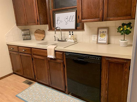 3 bedrooms with split bedroom plan, over 1600sqft, added onto the house is an indoor laundry/mudrm plus additional living or rec room, Central Heat/Air & Roof replaced in 2010, Replacement Dbl Pane Windows, Refinished porch, Fresh paint & Cabinet Stain, Vinyl wood floors, storm shelter, fenced yard. Clean and move in ready! Close to schools. This home qualifies for $0 down financing & Sellers will help with closing costs!