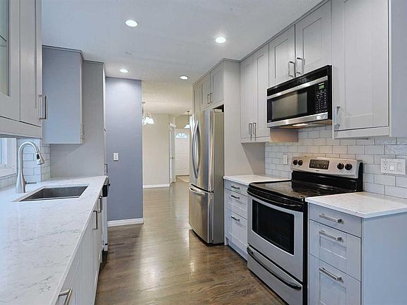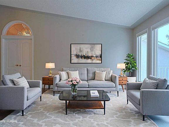 Tucked away in the exclusive SILVER SPRINGS VILLAS project is where you’ll find your next home…this beautifully updated bungalow in this collection of 32 lovely homes in the highly-desirable established community of Silver Springs. Walking distance to Silvercreek Park & just minutes to neighbourhood shopping, this fully finished villa enjoys central air & hardwood floors, 3 bedrooms + den, quartz countertops & is available for quick possession. You will love the bright & expansive feel of the main floor with its soaring vaulted ceilings, wonderful living room with wall-to-wall windows, formal dining room with alcove for your china cabinet & dining nook with bay window & French door to the big backyard deck. The galley-style kitchen has been beautifully updated & features quartz counters & subway tile backsplash, loads of cabinet space & stainless steel appliances. Main floor has 2 bedrooms including the primary bedroom with vaulted ceilings, large walk-in closet & ensuite with skylight & vaulted ceilings, quartz counters & tile floors, soaker tub & separate shower. The lower level is finished with a big rec room with stone-facing gas fireplace, huge 3rd bedroom with walk-in closet, another full bathroom & an office/library/exercise room with built-in shelving. Main floor laundry with built-in cabinets & side-by-side Kenmore washer & dryer. Dedicated main floor home office with wainscotting & French door. Lower level also has 2 great storage rooms/workshop with built-in shelves. New hot water tank in 2020 & roof shingles in 2019. Nearby Silvercreek Park connects to the Bow River Pathway system - which leads to Bowmont Park & its 164 hectares of winding trails, sports fields, picnic sites & off-leash area overlooking the Bow River. And to top it off...you won't need your lawn mower or snow shovel because mowing the lawn & shoveling the snow is taken care of for you with the monthly maintenance fees. Neighbourhood shopping & schools are all within easy reach, & with the convenience of its prime location close to Nose Hill Drive, Crowchild & Stoney Trails means you are only minutes to popular Crowchild Twin Arenas, Crowfoot Centre & LRT, major retail centers, University of Calgary, hospitals & downtown.