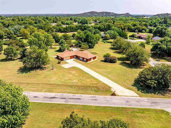Location, location, location! 4 bedroom, 2 bath, 2 car garage, 2200sf home on 2+ beautifully, partly wooded acres with mature trees in prestigious Wichita Mountain Estates features an in-gound pool that was drained and needs maintenance and filling, an in-ground storm shelter that will keep your family safe during severe Oklahoma weather, a detached garage with overhead door, a shed with a well and a riding mower that can stay with the right offer. Needs some updates and minor repairs but what a location for the price! Seller desires to sell as-is. List price reflects condition. You will fall in love with the serene and enjoyable setting that is close to Medicine Park and the Wichita Wildlife refuge with fishing, boating and hiking at Lake Lawtonka. All this is found located in the award winning Elgin school district and just 5 minutes from Fort Sill’s Apache gate. Welcome Home! Please contact the REALTOR you have a written agreement with or if unrepresented call or text Stefanie Johnson at 580 583 5238 for more information or to schedule a showing.