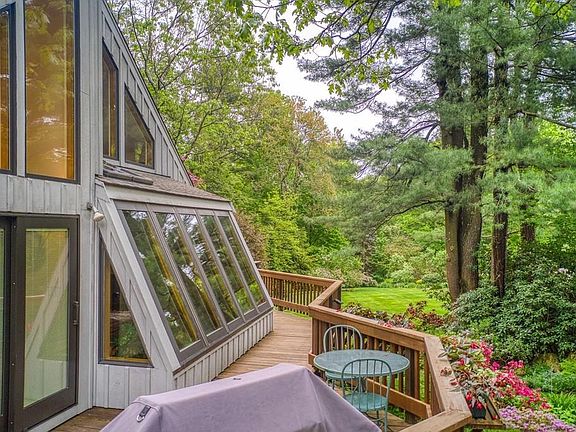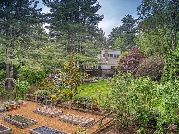 This home is perfect for those who value privacy, treasure natural beauty, and insist on attention to detail. View picturesque grounds through banks of windows or the customized wraparound deck. Plantings and trees were chosen for seasonal interest and ease of care. Inside, discover clever features and unique finishes in every room. Flavin Architects guided kitchen renovations; professional grade appliances, generous cabinetry, expansive work areas, and exquisite tiger maple accents only start to describe this showcase space. Notable design choices in the bathrooms such as Barbara Berry hand-cut tiles, pear wood cabinetry, and a towering glass shower make these rooms architectural jewels. Other points of praise--a Vermont castings wood stove w/stone mantel, a wine cellar, a copper outdoor oven, wood spiral stairs/loft, a cold storage pantry, a designer patio, a deluxe laundry room, and a wood shop are just a few. This quiet, beautiful setting is on one of Harvard's prettiest roads.