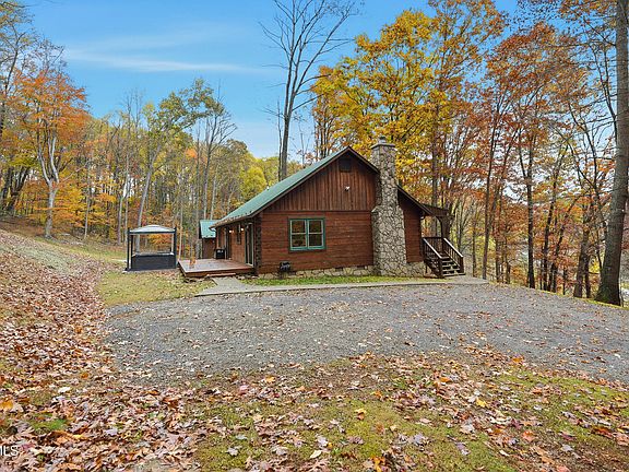 Escape to your own private retreat with this gorgeous log cabin nestled on nearly 8 wooded acres! This well-maintained home is in excellent condition and offers the perfect blend of rustic charm and modern comfort. Inside, you'll find beautiful wood and tile floors throughout and an open-concept living space ideal for gathering and entertaining. The home features 3 bedrooms and 2 full baths, all designed with cozy mountain style in mind. Enjoy the stunning views from the amazing front porch—it feels like living in a treehouse! Outside, you'll appreciate the spacious parking areas and two convenient driveways, perfect for guests or extra vehicles. Additional highlights include a durable metal roof, relaxing hot tub, underground power lines, and a backup generator for peace of mind. A very nice storage building provides plenty of space for tools and toys. This is the perfect mountain getaway or full-time home for those who love nature, privacy, and comfort.