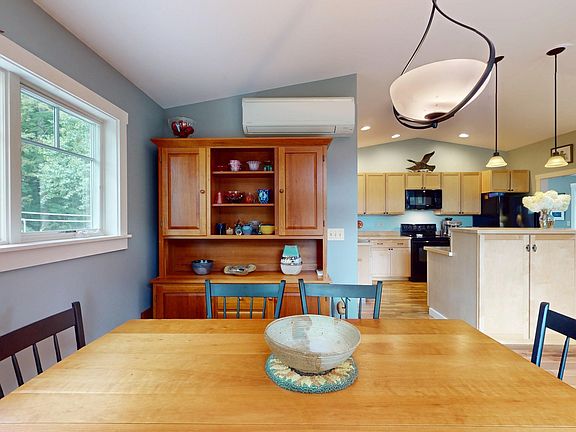 This is such a great location! Located close to town, this home is in a private setting with over one and a half acres of open yard and trees. Huge windows in the living room face the view of the mountains. A large deck with that same view is the perfect spot for morning coffee. The open concept living/dining/kitchen has a wood stove to keep things cozy in the colder months. The kitchen has beautiful built-ins for all your storage needs. This space faces east to enjoy views of your beautiful front yard and the mountains beyond. Down the hall you will find the primary suite and a 3/4 en suite bath. Just off the primary bedroom is an amazing sunroom, perfect for all four seasons! There is also first floor laundry and plenty of closets. Two additional bedrooms and a full bath are located in the lower level, which is walk-out. The lower level also includes an office with doors to the outside and a separate den/family room with doors to the outside. A separate two car garage is right next to the house for your vehicles and equipment. This house was completely rebuilt in 2015 with single level living in mind, as well as all the bonus space on the lower level. Just minutes from town, with space to run around, play games or plant gardens and take in the view. All this plus town water & sewer! Offers due by 9/9/25 at 9am.