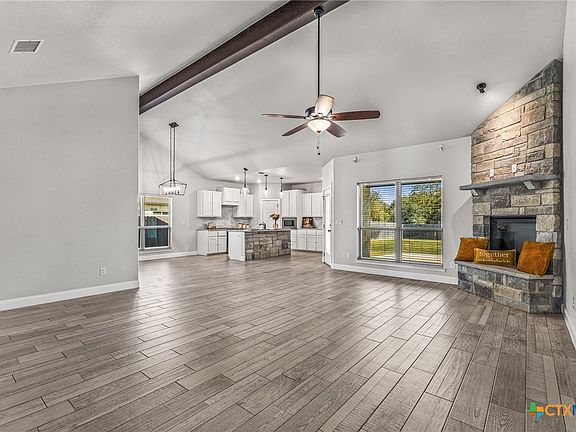 Welcome to this absolutely stunning luxury home loaded with high end modern amenities, perfectly situated in Harker Heights, with its desirable Harker Heights High school just a 6 mins away! This breathtakingly beautiful 4-bedroom estate boasts an expansive 0.454 acres of serene, offering the ultimate retreat for those seeking unparallel luxury and tranquility. The home's open layout seamlessly connects the living spaces, creating a sense of flow and freedom, and features a striking beam in the living room that adds a touch of rustic charm. The high ceilings add a sense of grandeur, with vaulted ceilings and also tray ceilings. The gourmet kitchen is truly spectacular, featuring exquisite granite countertops, sleek stainless-steel appliances a spacious large island perfect for entertaining gatherings, cabinetry for storing all your culinary essentials. The master suite is a serene oasis, truly massive bathroom with lavish dual vanity and gorgeous herringbone accent tile that adds a touch of sophistication. Enjoy cozy intimate evenings with the ambiance of the remote control fireplace, and keep prized vehicles pristine and protected in the climate- control three car garage. With its incredible convenient location near fantastic dining and shopping options, this luxury home has it absolutely all!