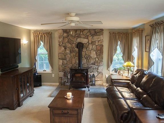 Don't miss out on this meticulously cared for home, offering a private retreat on over 2 acres! Updates include a new roof, vinyl siding, new pellet stove, all new kitchen appliances, solar panels and more. This home is even hard wired for a generator. The open kitchen & dining with extra seating at the island makes for great entertainment space. Off the kitchen is a large deck overlooking mature trees. The family room extends right off the kitchen and has a newer pellet stove perfect for our cool New England weather. A first floor office, playroom or separate formal dining space is ready to use as your family needs. The second floor offers 4 large bedrooms and an en-suite master with Jacuzzi soaker tub! The walk out basement leads to a large patio with a hot tub and views of the beautifully landscaped yard. Don't miss out on this one, schedule your private showing today!