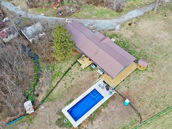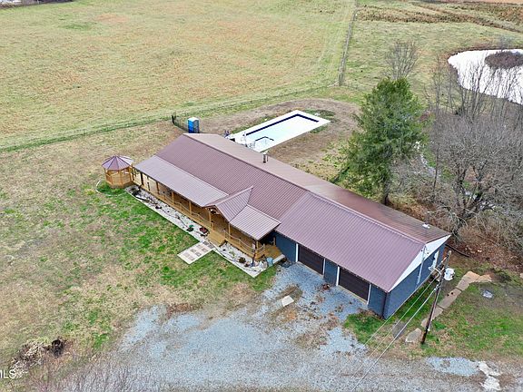 Welcome to your future mini farm and private oasis! This completely remodeled home features 3 bedrooms with 2 baths custom with heated porcelain tile floors, Bluetooth lighting and custom backlight mirrors. The nearly wraparound porch in the front boasts a custom wood ceiling with recessed lighting. The main entry features an open design straight to the gorgeous custom kitchen with granite countertops, new stainless appliances and a huge island for entertaining. The kitchen also features an eat in and a separate dining area. The living room features a custom bay window with a bench seat with built in storage. Down the hall you go past two bedrooms and the second bath into the master suite featuring a trey ceiling with custom trey lights. There is a large walk in closet with the master bath featuring double vanities and a custom walk in tile shower with a seat. The master also features a walkout to the porch overlooking the fiberglass saltwater pool with a built in hot tub and sun bathing pool lounge gently sloping to the deep end. The just over six acres also features its own spring fed water system, a separate garage, two separate block buildings and a huge pole barn all with concrete floors. There is also a silo and large level ground for your own garden or to fence in for your animals! Don't forget to enjoy the year round Mountain View's while enjoying the pool or hot tub! Book your showing today to view this custom home conveniently located near North Carolina, Johnson City, Kingsport, Bristol and Gatlinburg or Pigeon Forge. So many more amazing amenities to list so check them out in person!