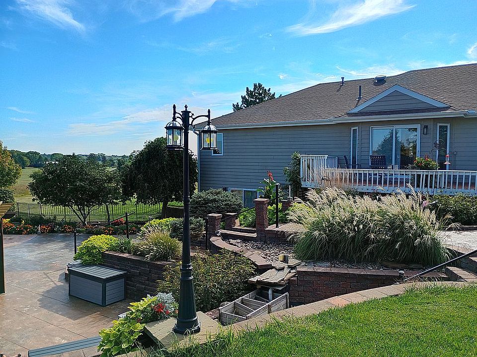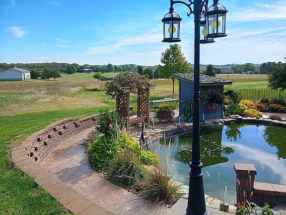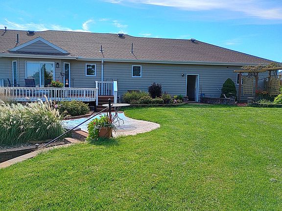 The home is situated 4 miles north of I-70 on Old 81 Hwy on a paved road into the beautiful Prairie Ridge Addition and sits on 5.1 acres with 1 acre of irrigated lawn supplied from a well. Automatic watering to all flower beds, garden and water lines run to strategic locations for flowerpots. No need to worry about watering the yard, garden, flowers beds and flowerpots daily or while away from home. The large deck off the dining room or the front deck is great for having a cup of coffee, enjoying breakfast or just enjoying the beautifully landscaped yard. Large lower patio with Arbor is great for entertaining, complete with a large Koi Pond, river and 2 waterfalls. Great for family gatherings or hosting large crowds. Home features a walk-out basement to the beautiful lower patio which is also viewed from the upper deck.