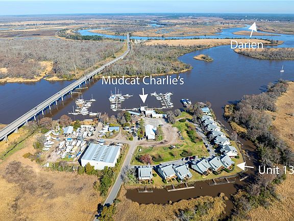 This condo is located on the Altamaha River and is a fisherman's paradise with a private dock and parking for a boat. Located on a tidal creek, walking distance from Mudcat Charlie's and Two Way Fish Camp with a Full-Service Marina. This 2 bedroom, 2 bathroom unit boasts gorgeous views of the Altamaha from the family room & spacious screened porch. There is an open living space between kitchen, dining & family room. The screened porch is perfectly serene place to watch beautiful sunsets. Upstairs you will find a loft area that can serve as a third sleeping area, office, game room or workout room. There is an outdoor area perfect for outdoor cooking or grilling with a view! There is covered parking and a generous enclosed storage area that has a sink inside with a water softener/water filtration. The many updates or upgrades consist of the home being wired for a generator, HVAC and ducting were replaced 8 years ago, FOAM insulation in the attic & new windows were installed on the front of home! There is also a community dock. Don't wait to see this beauty!!! One minute drive to Historic Downtown Darien, 20-minute drive to the beach. A rare listing so call today & easy to show!