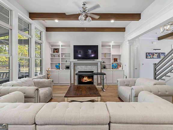 Escape to your own private paradise! Situated on a tranquil, approximately 2-acre lot, this prestigious custom home offers an unparalleled blend of seclusion and sophisticated luxury. From the moment you arrive, you'll notice the commitment to quality, evidenced by the heavy trim package and high-end fixtures that define every space. No detail has been overlooked. Step inside to an open and bright floor plan that is perfect for both grand entertaining and comfortable daily life. The home features a stunning gourmet chef's kitchen, a formal separate dining room, a versatile den or private office, and an expansive living room. The Owner's Suite is a masterpiece of design and comfort. The large, luxurious ensuite bath offers a magnificent walk-in shower and elegant double vanities. Beyond the bath lies a dream-worthy walk-in closet and dressing room, providing an exceptional, tailored space. The outdoor amenities elevate this property to resort status. Enjoy seamless entertaining on your covered back porch while taking in the views of your heated, black pebble tech pool and hot tub.