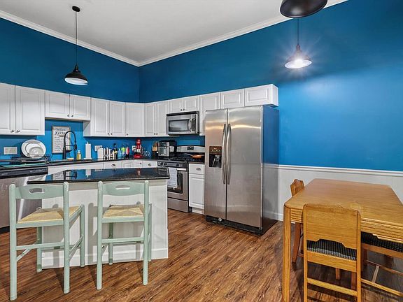 Step into timeless elegance with this bright and airy Italianate Victorian in the heart of Janesville. Rich in original character and charm, this 1869 masterpiece welcomes you with a striking entry foyer featuring a grand stairway and chandelier. The spacious living room showcases an Italian marble fireplace and an elaborate tin ceiling - true statement pieces you won't find anywhere else. The main floor offers an open, light-filled kitchen with an island, perfect for cooking and gathering. A full second kitchen upstairs creates flexibility for an in-law suite or extended living arrangements. Convenience continues with an upstairs laundry room and modern amenities throughout, including two central air units, USB wall plugs, and updated custom windows. Outside, enjoy a generous courtyard, a