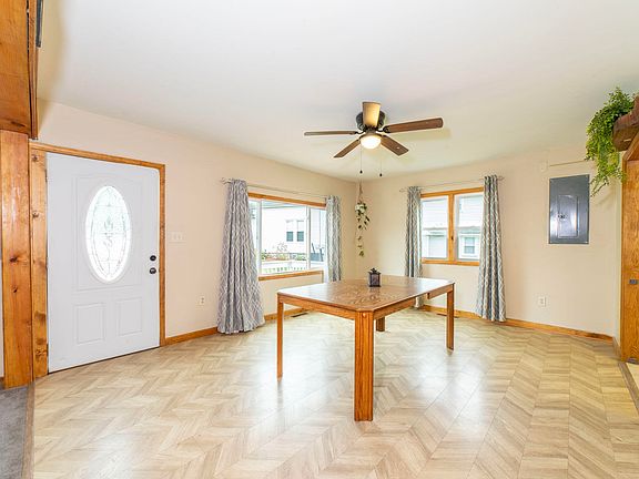 Welcome to this spacious 5-bedroom, 2-bathroom home perfectly situated just one block from the vibrant heart of downtown Hobart. Enjoy the best of both worlds--peaceful, natural surroundings with the convenience of city living just a short walk away. Step inside to a bright and airy living space, perfect for relaxing or entertaining. The expansive living room flows seamlessly into a large dining room, providing plenty of space for gatherings of any size. The heart of the home is the updated kitchen, featuring a large island with a gas range at its center, surrounded by plenty of counter space to inspire your inner chef. The main floor offers two generous bedrooms providing flexibility and convenience. Upstairs, you'll find three more bedrooms. Outdoor living is a dream here. Unwind on the charming front porch with your morning coffee, or host a barbecue on the back patio. The spacious lot offers plenty of room for activities and gardening, and it backs directly up to the scenic, wooded Duck Creek, offering a sense of privacy and tranquility. With its prime location and generous living spaces, this home is a rare find. It's an ideal retreat that still keeps you close to downtown Hobart's many stores and restaurants. Don't miss your chance to own this fantastic property!