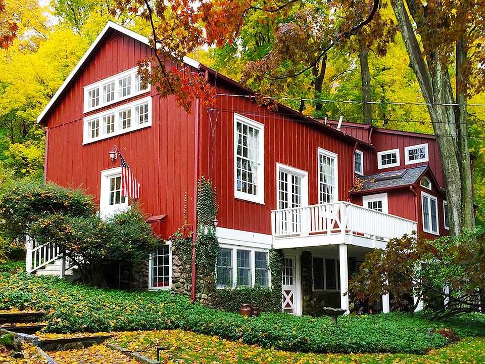 A rare opportunity awaits the special buyer searching for a home that offers architectural distinction, history, character, luxury, property & privacy in a magical setting. Nestled on 3.31 wooded acres amidst vibrant gardens, blooming perennials, mature landscaping & stone walls, this unique home is a converted C.1875 Dairy Barn brimming w/style, beauty & charm w/over 2700sf on the 1st & 2nd floors, plus 850sf on the walk-out lower level. Dramatic living room with 20ft cathedral ceilings & stone fireplace. Open dining room adjoins chef's kitchen w/stainless steel appliances. Inviting family room w/doors to large deck. Slate tiled 4-season sunroom leads out to stone patio & yard. Cottage-like guest room, beautiful baths, custom millwork, abundant built-ins & walls of windows that let in natural light & tranquil views from all directions. Intimate, gracious living in a secluded oasis, yet close to schools, shops, pool, library, North County Trailway & train station w/45-min NYC commute.