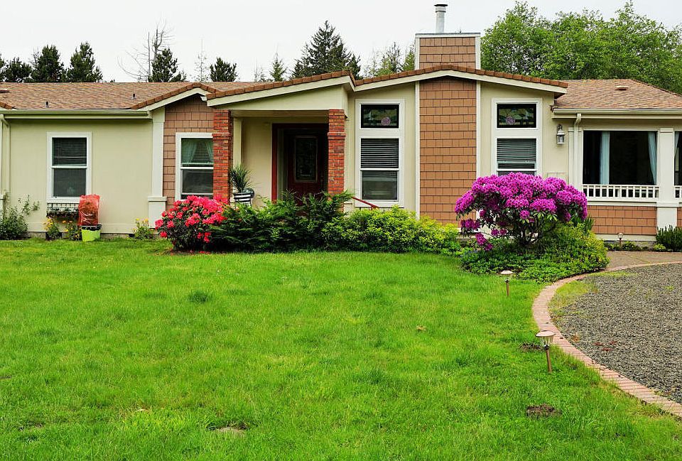 You must see this triple-wide manufactured home to believe it. Tastefully decorated, with tray ceiling in living room, built ins and art niches throughout. The home has an enclosed sunporch with electric fireplace on one side and an enclosed studio/office/workshop with sink and exterior door between the home and the attached double car garage. Formal living room with gas fireplace, den with built in TV/music cabinet, eat-in kitchen plus dining room. Walk-in pantry, built-in desk off kitchen, laundry room with 1/2 bath and utility sink. Cabinets and storage galore! Located on 1 acre of property.