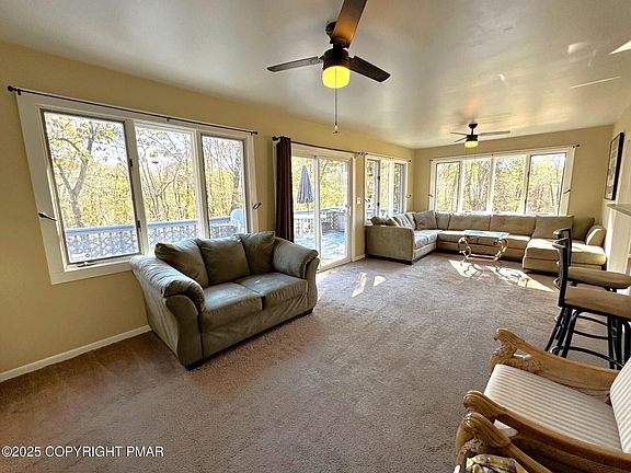 Quietly positioned at the end of a cul-de-sac road on 5.2 ACRES, this unique 2-bedroom, 2 bath, ranch residence has been remodeled on the interior, and the owner is working on stoning the front exterior, siding the remainder of the home, and replacing the rear/side deck! The interior has a vintage floorplan. The entrance foyer welcomes you and gives you three directions to head to. Starting on the immediate right you are greeted with an ample sized bedroom with separate entrance to the backyard, this transitions to the sunk in dining room, kitchen, and large rear living room with deck access and seasonal mountainside views. Working our way back through the kitchen which has been completely upgraded and has a stainless-steel appliance package, we find the main bathroom, primary bedroom, and primary bathroom with laundry closet. You are literally moments to route 80 and the NJ state line! No cats, 1 small dog under 50 lbs with an extra month security deposit. Owner is open to leaving the large sofa and TV in the living room. Owner will also be cutting the grass so all you have to do is enjoy the acreage with this one! Renters insurance is required.