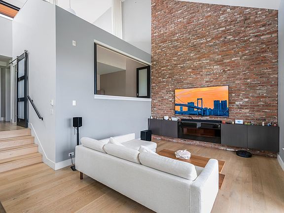 This rarely available penthouse offers a unique blend of modern elegance and urban charm. Featuring 2 bedrooms plus a loft (serve as the master bedroom), this residence boasts 20 ft ceilings, a stunning reclaimed brick feature wall, and an open concept kitchen equipped with quartz countertops and s/s appliances. The spacious dining/living room area provides the perfect setting for entertaining guests. The loft opens up to a magnificent 500 sqf rooftop patio, where you can enjoy mesmerizing water, mountain, and city views. With two parking stalls (one with EV charging rough-in) and one storage locker included, convenience is at your fingertips. Located steps away from the riverfront promenade and the Q2Q ferry, this penthouse offers unparalleled access to the best of New Westminster living.