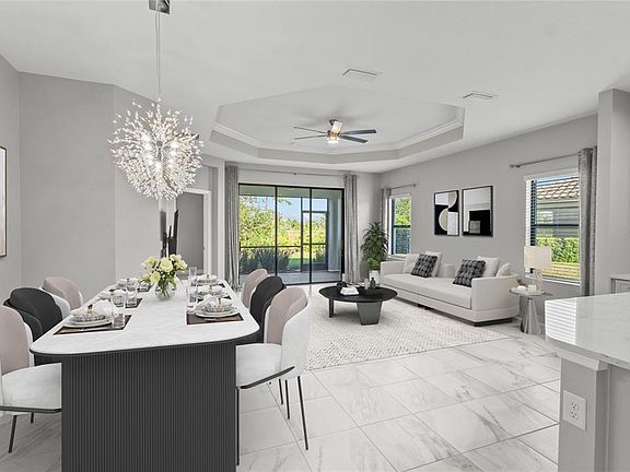 One or more photo(s) has been virtually staged. Florida living at it's finest, with NO CDD fees! This gorgeous villa is priced to sell and move-in ready located in the sought after resort-style, gated community of Vicenza. Built in 2021, this 2-bedroom, 2-bath home with a versatile den/office, and 2-car garage, blends modern coastal elegance with peaceful preserve views. From the inviting covered front porch to the screened lanai overlooking a lush nature preserve, this home is designed for both relaxation and entertainment. You'll love the high ceilings, large-format tile flooring, and freshly painted interiors in warm grays and crisp whites, all highlighted by designer light fixtures and contemporary ceiling fans. The heart of the home is the open-concept great room, anchored by a stunning kitchen featuring quartz countertops, light gray cabinetry, subway tile backsplash in a herringbone pattern, stainless steel appliances including a gas range, and a spacious island perfect for casual dining or entertaining. Large sliders allow natural light to flood the space and provide seamless access to the northeast-facing lanai, ideal for enjoying morning coffee without the afternoon heat. The private primary suite is tucked at the rear and includes dual vanities and a spa-style walk-in shower, while the guest bedroom and full bath are thoughtfully separated for privacy. Located on a quiet, low-traffic street just a short stroll from the community amenity center, you’ll enjoy access to a resort-style heated pool and spa, pickleball and bocce courts, two dog parks, clubhouse, and nature trails. With underground utilities, no power lines obstruct your view. Just minutes from beaches, golf, dining, shopping, and more, this home offers the Florida lifestyle you've been waiting for. Schedule your tour today!