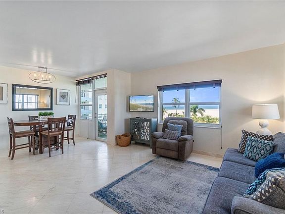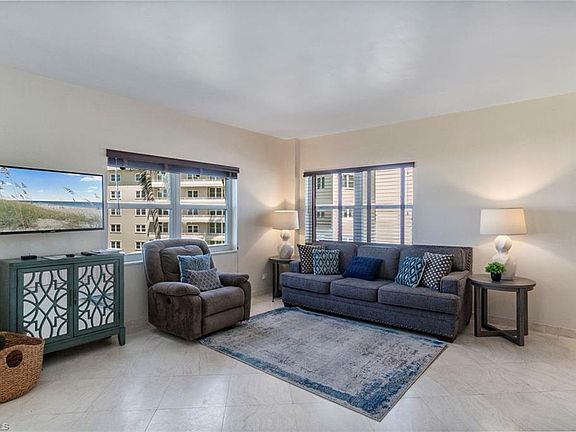 DIRECT BEACHFRONT – GULF VIEWS – LUXURY UPGRADES! This 4th-floor suite is situated directly on Marco Island’s award-winning crescent-shaped sandy beach, offering sweeping Gulf of Mexico views, western exposure, and breathtaking sunsets framed by swaying palm trees. Remodeled with elegance throughout, the residence features Italian marble floors laid on the diagonal, a custom kitchen with soft-close cabinetry and striking honey onyx counters and backsplashes, and a spa-like bathroom wrapped in marble from floor to ceiling. Impact-resistant hurricane-rated windows and balcony door provide peace of mind. The building offers resort-style amenities including a large beachfront swimming pool, private beach access, covered parking, a beach storage area, ground floor recreation room, and convenient laundry just steps from the unit—delivering the ultimate island retreat. THIS PROPERTY QUALIFIES FOR A 1% LENDER INCENTIVE IF USING PREFERRED LENDER, INQUIRE FOR MORE DETAILS**