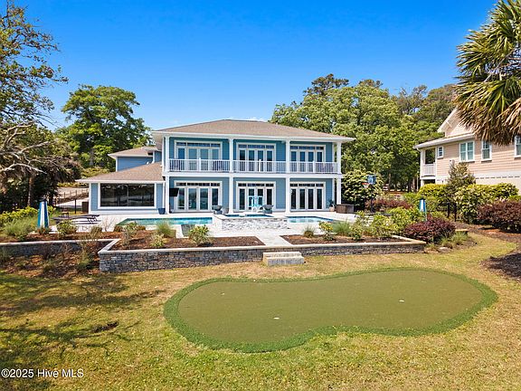 This extraordinary waterfront sanctuary, situated on the Intracoastal Waterway, commands attention on a magnificent 0.83 acres in the charming town of Sunset Beach. As you approach, you will be captivated by the breathtaking panoramic views across the serene waters, complemented by an expansive, meticulously landscaped yard featuring lush new sod, vibrant blooms, and tasteful fencing. Experience luxury at its finest with your private heated oasis, a stunning 18 by 40-foot pool where you can unwind in tranquil waters. The hot tub provides the perfect setting for relaxing under the stars, while elegant fire bowls create an inviting ambiance for unforgettable evening gatherings. Channel your passion for golf on the beautifully manicured putting green, or find your personal retreat as you fish from your charming pier, shaded pergola, and dock. When adventure calls, easily set sail on the beautiful 2020 Robalo EX, which is included with the sale of the property. Launch from your own backyard and immerse yourself in the breathtaking natural beauty that surrounds you on the Intracoastal Waterway. Step inside this exquisite residence to discover a haven of space and comfort. With five generously sized bedrooms and 5.5 luxurious baths, all easily accessible via a convenient elevator, this home is designed for a refined lifestyle. The heart of the home is a recently remodeled kitchen that exudes sophistication. It features a colossal island with a second prep sink, a sleek new 2023 refrigerator, and double wall ovens that elevate your culinary experiences. Bathed in natural light from abundant windows, the kitchen and dining area showcase stunning views of the Intracoastal Waterway, making every meal a feast for the senses. Retreat to the master suite, a meticulously designed sanctuary that embodies relaxation. Enjoy a custom closet that meets all your storage needs and a newly renovated, spa-like bathroom with an expansive walk-in shower. Exceptional upgrades throughout,