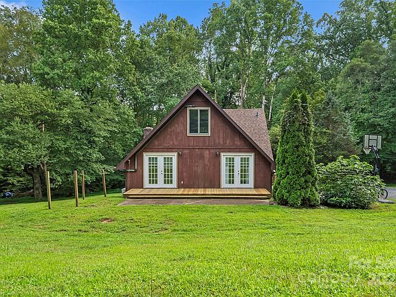 Discover this A-frame style home tucked away on 2 private acres inside Morganton city limits. With 3 bedrooms, 2.5 baths, and 1,208 sq ft, this home combines character with functionality. The open living area features vaulted ceilings, exposed beams, and a stone fireplace, with natural light pouring through the expansive windows and French doors. The kitchen is complete with granite counters, stainless steel appliances, and plenty of storage. The main level primary suite provides convenience, while two additional bedrooms and a bath are located upstairs. Updated bathrooms offer tile finishes, dual vanities, and a walk-in shower. Outdoors, enjoy a wooded lot that feels private yet remains close to downtown Morganton, shopping, and dining. With city water and sewer available, this property offers both seclusion and accessibility. A rare opportunity to own a unique home in a desirable location, offering space to enjoy nature while staying connected to town. Schedule your tour today!