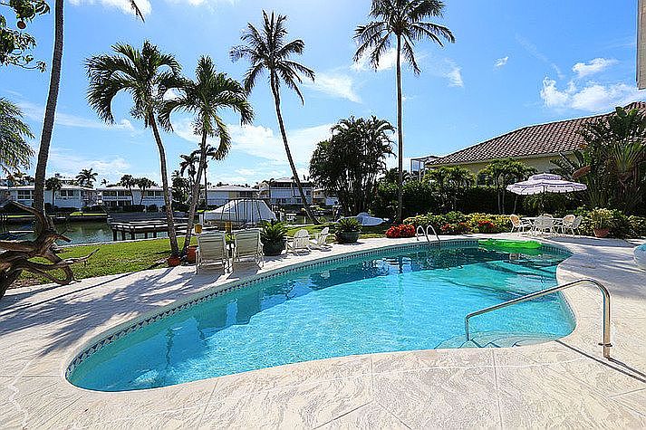 Take advantage of the southwestern exposure in this single family home with 100 ft of water frontage in the Moorings. The spacious family room with vaulted ceilings, skylights and transom windows over the sliding glass doors is bathed in sunlight. Views of the clear blue skies and tranquil waterfront are seen from most rooms throughout the property. Five bedrooms and four baths and the open floor plan, pool and lanai offer a relaxing retreat to enjoy the Naples lifestyle. Access to the Gulf is easily obtained through Doctors Pass. Residents can also enjoy the private Moorings Beach Park, only a short bicycle ride away. This classic home is located on a quiet cul de sac with no through traffic.