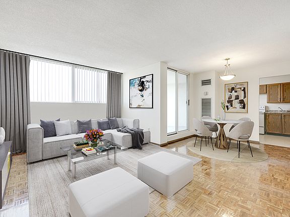 Bright and spacious two bedroom suite with hardwood parquet floors in bedrooms and living/dining roomsIndividual thermostatic controls for heat and air conditioningCeramics in bathroomsLarge private balconies and in suite storage roomBoth underground and outdoor parking are available