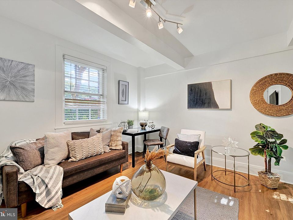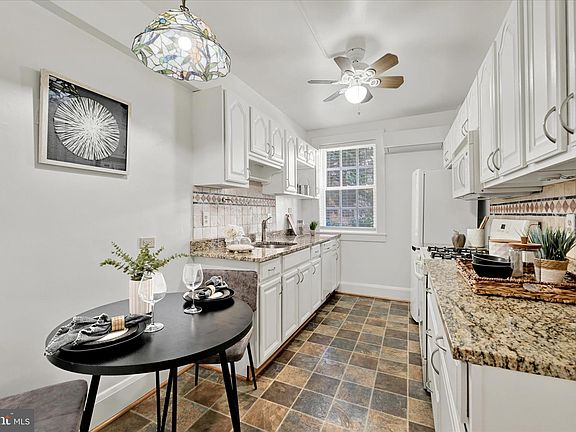 This home is convenient to all things, Roland Park, Gilford, Hampden, Homeland and the Johns Hopkins Homewood Campus. Situated in the picturesque Tuscany-Canterbury neighborhood, one of Baltimore's most charming areas, is the historic Lombardy building! Welcome to this unique, ground-level 2-bedroom unit that offers a private entrance and a tranquil covered patio. A beautiful space to call home is set amidst beautifully landscaped grounds, mature trees, and a serene atmosphere that feels like a country cottage. Inside, you'll find the beautiful simplicity of bright white walls, a spacious eat-in kitchen with granite countertops, tiled backsplash and gas stove. The main bedroom offers a private bath with a jetted tub. The second bedroom is versatile; ideal as a guest room or home office. Additional features include an upgraded mini-split ductless A/C system for summertime comfort. The co-op fee covers property taxes, heat, water, sewer, storage, exterior maintenance, grounds upkeep, and insurance. Street parking is available and garage space can be rented. Laundry is conveniently located on-site, and pets are welcome! Make your appointment now! (The unit is On Stoneyford. Look for the 220 Stony Run Sign. Go down the steps to the garden level unit on the side of the building - just before the garages.)