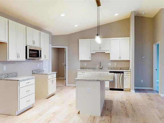 This 3 Bedroom Ranch Style Home has a 3 Car Garage, 30 yr. Architectural Shingles & an 18' x 14' Patio to entertain. It has Vaulted Ceilings in the Great room, Kitchen & Breakfast area, Laminate flooring, 42" Upgrade Soft Close Kitchen Cabinets, Granite Kitchen Countertops, Kitchen Island w/ Overhang, a Walk in Pantry, Can Lighting & Stainless Appliances. The Master Bath has a 5' shower w/ Semi Frameless Shower Door & Double Bowl, Adult Height, Soft Close Vanities. Other Features Include Custom Paint, Egress Window, Rough-In for Future bath in LL, Carriage Style Insulated Garage Doors w/ Opener & Keypad, 2 Panel Doors w/Satin Nickel Hardware & a Fully Sodded & Landscaped Yard.