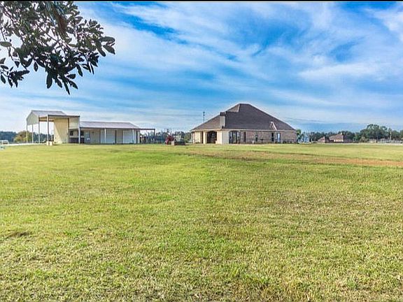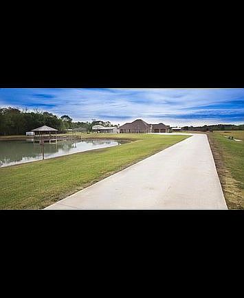 This 2014 custom built home is 2857 square feet on a post tension slab. It sits on 6.9 acres of country land. The wooden pier, gazebo, and cleaning station is perfect for those fishermen. It is set off from the road (over 400 ft). This provides an extra long cemented driveway giving plenty space for guest parking. The patio is perfect for those family gatherings as well. It is fully equipped with gas burners, double sink, ac/h half bath, wood burning fireplace, hibachi grill & wired for an outdoor tv. To complete anyone’s outdoor needs this property has a 32x45 workshop with 20x45 lean to. The workshop is powered with its own cleanup sink area. Plus, a 16x20 rv covered with full camper hookups.