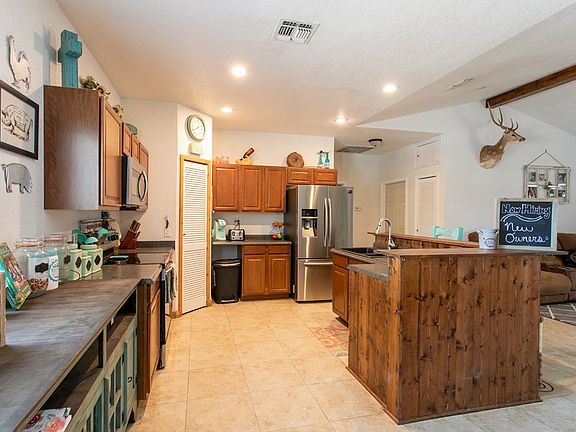 Welcome home! This traditional Hill Country home is located right outside of the city limits with close access to shopping, medical, schools plus no city taxes! Sits on half an acre on a no through street. Home boasts open concept living, vaulted ceilings, large kitchen with plentiful cabinet space and tiled floors. Master is spacious with a walk in closet and on suite bath. Oversized laundry/mud room. Large 2 car carport attached. Huge fully fenced backyard with large deck and pergola perfect for family/friend get togethers. There is a great fenced area for gardening and storage shed. This home is a must see!
