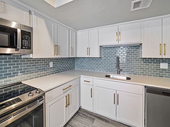 - Exterior features: 6 Panel Doors, 6 inch baseboards, Barbecue, Black Appliances, Brushed Nickel Hardware, Ceramic tile backsplash, Hard Surface CounterTops, Landscaped Courtyards, On Call Emergency Maintenance, Package Receiving, Pet Park, Pickleball Court, Planned Social Events, Quartz countertops, Spruce Lifestyle Services, Stainless steel appliances, TV Lounge, Tennis Court(s), USB Port, Undermount Sink, Volleyball Court, Wood Style Flooring Throughout, Wood thru out except bedrooms