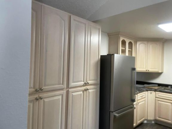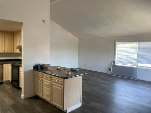 Large kitchenNew kitchen and appliancesLots of lightVaulted ceilingsNew flooring and paintUpstairs unit