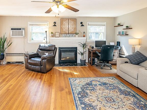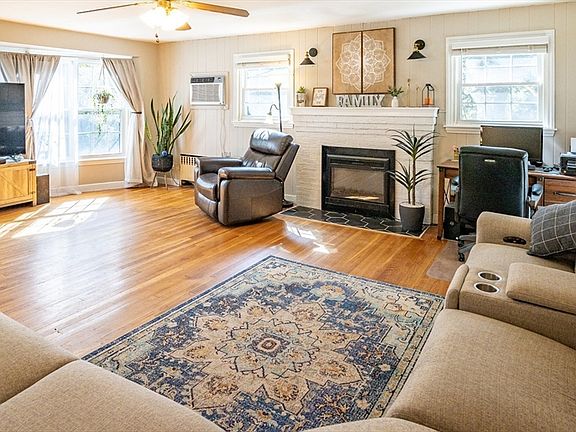 MULTIPLE OFFERS - HIGHEST & BEST BY 12 PM MONDAY 10/13. Well-kept brick ranch in a business zone, ideal for residential or mixed-use. Features a spacious living room with fireplace (using electric insert) and hardwood floors, open to dining area with room for a large table. Kitchen was updated by Naylors 10 years ago with granite, stainless steel appliances, island & vinyl plank flooring. Three large bedrooms with hardwood floors. Laundry has been moved upstairs to a bedroom, but could be relocated to the basement again. The full bath upstairs has been updated and a half bath was added in basement (2020). A family room in the back of the house has a slider to a Trex deck and there is also a second deck that leads to a newer hot tub (2024). Other updates include gas furnace (2022), hot water heater (2023), roof (2015), windows (2007). The basement includes a workshop area where there was previously a garage. Town water & sewer.