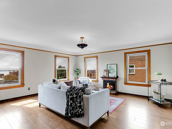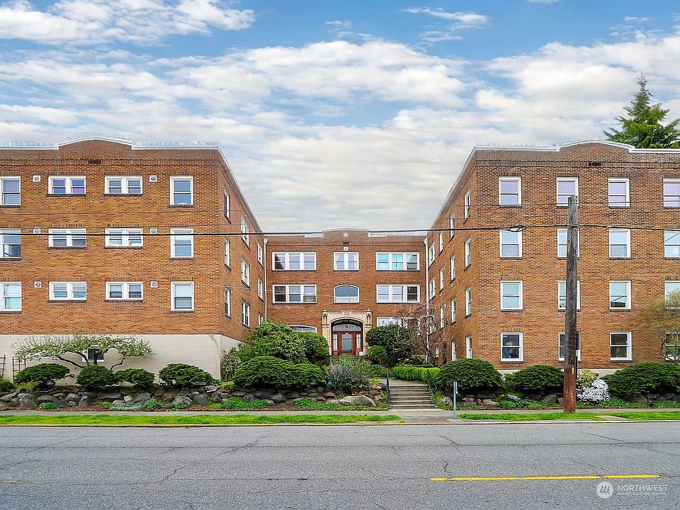 Outstanding LOCATION, stunning VIEWS, and VINTAGE CHARM make this spacious Queen Anne 1BR a must-visit! The south facing, sun filled, top floor unit features tremendous views of the Space Needle, skyline, Mt. Rainier, and Elliott Bay. The handsome brick 1930s Co-op, has all the charm of its era including a wonderful lobby gathering space and historic details. The unit features newer hardwood flooring, updated windows, fresh paint throughout, and an updated bathroom. Great sized bedroom and large living room with original wood trim. The unit includes built-in storage, three closets (including one walk-in), plus basement storage and laundry space. Incredible location close to all the shops and restaurants that Queen Anne has to offer.