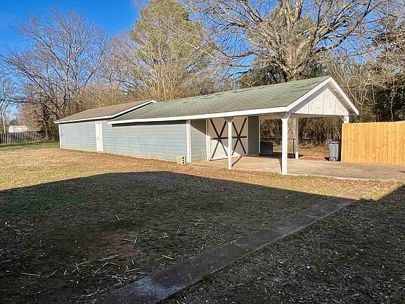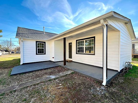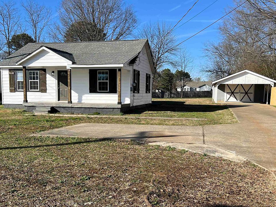 Bath is all new. Light fixtures & ceiling fans new. All new windows. New water heater. All neutral paint throughout. Roof is 4 years old. Covered front porch and covered back porch. Covered porch at detached shop/garage as well. The front part of the detached building is being used as a WORKSHOP 22 x 16, and back part is 34 x 16. The Back section has a roll up garage door. Front being used as a shop, but can be garage as well. The wall separating could be removed. Parking pad or turn around in driveway. Privacy fence parallel to driveway is a part of this property, as well as the back fence.