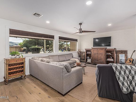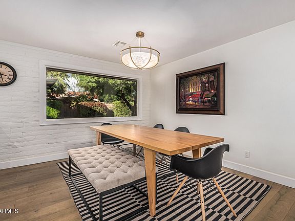 True heart of Moon Valley! Updated and modernized 3 Bedroom/2.5 Bath with hardwood floors throughout, open kitchen with huge island, gas cooking, updated appliances. Step-down living room. Bonus space perfect for office. Exit to covered patio, amazing detached shed with AC, Pool and seating area. Updated baths, fresh paint throughout. Newer AC, OWNED SOLAR. Situated on large lot on quiet street steps to Moon Valley Country Club, highly-rated elementary school and Moon Valley Park!