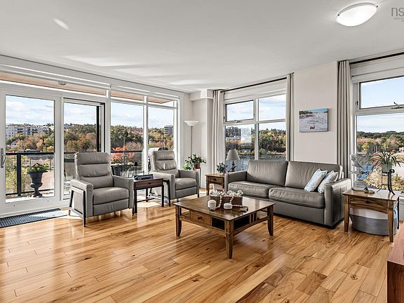 Rare Opportunity on the Bedford Waterfront! Waterfront condos in this sought-after Bedford location are rarely available — don’t miss your chance to own a stunning corner unit with unmatched views of the Bedford Basin. Enjoy breathtaking sunsets and watch sailboats and seagulls glide by from the privacy of your own balcony — one of the most private in the building. This one-of-a-kind unit features floor-to-ceiling windows and a cozy dining area with panoramic views, perfect for relaxing meals in a tranquil setting. The gallery entrance provides ultimate privacy and quietness, ensuring a peaceful living environment. Enjoy the ease of one-level living in a well-maintained building known for having one of the most welcoming condo communities in the HRM. Conveniently located just steps from grocery stores, pharmacies, and all major amenities. Plus, the proposed Bedford ferry terminal will be only a 5-minute walk away — making commuting a breeze. Whether you're downsizing or looking for a serene lifestyle by the water, this condo offers the perfect blend of privacy, comfort, and convenience.
