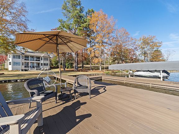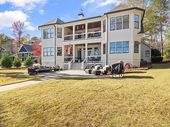 Lake Oconee MAIN LAKE WATERFRONT! Looking for the best location and views on Lake Oconee? This gorgeous lake front home sits at the end of a peaceful cul-de-sac in the beautiful equestrian neighborhood of Waters Edge with Big water views, walking distance of the Great Waters Marina & Clubhouse by Horseshoe Bend & Great Waters. On the main level, you will fall in love with the large open living room offering spectacular views of Lake Oconee. The recently updated kitchen is perfect for entertaining. Wake up to beautiful sunrises in the oversized master suite, with hardwood floors, crown molding, & walk-in closets. On this floor you will also find a dining room/library/office, large laundry room. Enjoy your morning coffee sitting on your lakefront porch in your Georgia hand-made rocking chairs or daybed swing. On the second level, more spectacular lake views for your guests with a large entertainment area with 3 bedrooms & 2 full baths. An additional bunk room allows this custom lake home to comfortably sleep 12. This home also includes a creek bed running to the lake on a beautiful landscaped lot. Get here fast, it will not last! This lake home is centrally located just minutes by boat from the Ritz, Cuscowilla, & all the amenities LO has to offer.