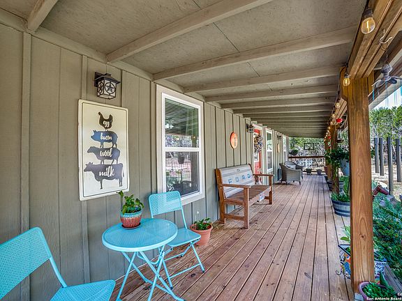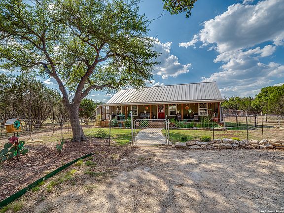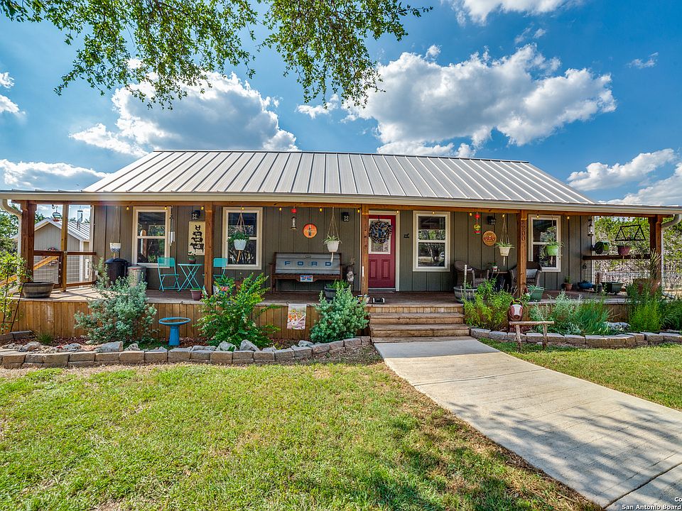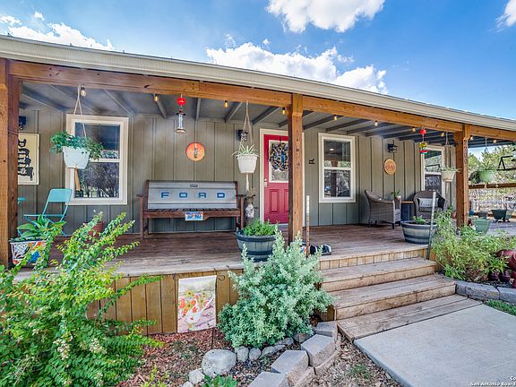 Welcome to this stunning 3-bedroom, 2-bathroom home, built in 2020 and located in the desirable Goat Hill Estates of Lakehills. Offering 1,152 square feet of comfortable living space on a picturesque 1-acre lot, this property combines modern convenience with serene country living. The home features a durable seamless metal roof and includes a 12x12 insulated storage shed with a loft for additional storage. The fenced-in yard with wire fencing ensures privacy and security. An owned water softener and water filtration system help protect your appliances and provide superior water quality throughout the home Relax on the back deck, complete with a built-in hot tub, perfect for unwinding after a long day! Both the front and back decks are covered, offering ideal spots for enjoying the frequent visits from deer and hummingbirds. The property is perfect for gardening enthusiasts with its raised garden beds and a chicken coop in the backyard. Additionally, a storage room was added to one of the secondary bedrooms earlier this year, providing even more space and functionality. Meticulously maintained, the home is located in a subdivision with a small HOA park on the lake, featuring a BBQ grill, picnic tables, and a boat ramp. This beautifully maintained home in Lakehills' Goat Hill Estates is a perfect blend of modern amenities and natural beauty. Don't miss your chance to own this exceptional property!