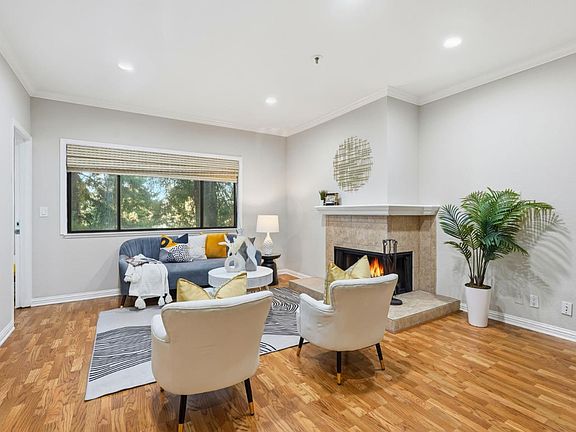 Beautifully updated condoSurrounded by towering redwoodsChef-inspired kitchenFresh two-tone paintTile flooringGranite slab countertopsOpen airy floor plan