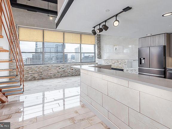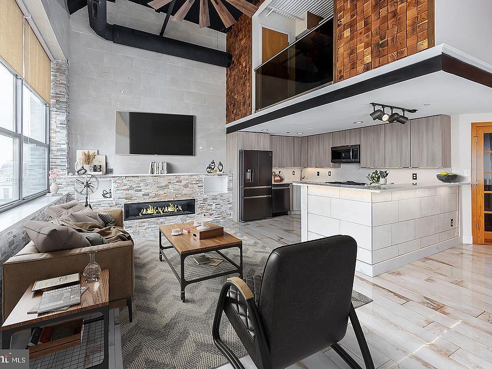 Welcome to 2200 Arch Street, Unit #1211! This stunning bi-level two bedroom, two bath, penthouse has been recently refreshed and offers the ultimate in luxurious living complete with breathtaking views of Center City Philadelphia. The industrial style, open concept loft features 17-foot ceilings, marble flooring throughout the spacious living and kitchen area, a wall of windows, gorgeous fireplace and designer kitchen with quartz countertops and backsplash, custom cabinetry and new appliances. Completing the first floor is a generously sized bedroom, with closet and laundry room and a modern, custom designed, full bathroom. The steel staircase serves as a focal point adding to the industrial allure of the property. Once you ascend the staircase you enter your own private oasis. The primary bedroom overlooks the open living space allowing you to take in those skyline views from the second floor. The ensuite bathroom features double sinks, a soaking tub and separate glass-enclosed shower. And to round it all out, the pièce de résistance, is the 600+ sq foot roof deck. Relax and entertain while taking in panoramic views of Philadelphia. As a resident this building enjoy a range of amenities, including a 24-hour front desk, a fitness center, Arch Gourmet convivence store on the first floor, all in a pet friendly building. This unit also comes with two deeded covered garage parking spaces. All of this is just minutes away from 30th Street Station, Trader Joe's, GIANT food store, Drexel University, Penn, Rittenhouse Square, and so much more. With its prime location in one of Philadelphia's most sought-after neighborhoods and its luxurious amenities and finishes, this high-end condo is the perfect choice for those seeking the ultimate urban living experience.
