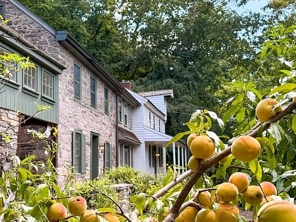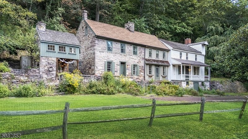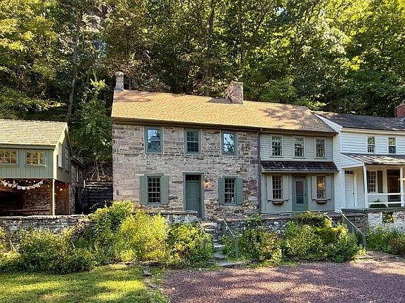 Nestled in a bend of the Delaware River, where the cliffs overlooking Bulls Island meet the soft curve of the canal, Raven Rock Post stands as a rare architectural gem a testament to the old-world charm and craftsmanship of the 18th & 19th centuries. The property comprises 4 enchanting stone buildings: 3 antique row homes and a standalone artist's studio. With 4 bedrooms, 3.5 baths, and multiple living spaces, it offers remarkable versatility, ideal as 3 separate homes, lucrative short-term rentals, or as a single residence. With wide-plank floors, hand-hewn beams, deep-set windows, and original plaster-over-stone walls, the home has been meticulously restored and paired with modern systems. Outside, terraced stone gardens bloom with herbs, native wildflowers and orchard trees, while the original summer kitchen has been transformed into a charming outdoor dining space, along with a stone garden shed on the lower level and an insulated artist's studio above. Directly across from Bulls Island State Park, a variety of natural beauty and outdoor activities are within short walking distance: fishing, kayaking, hiking, cycling, or exploring the river's edge. It's just a leisurely stroll across the footbridge to Lumberville, where you can dine at the historic Black Bass Hotel or breakfast at the Lumberville General Store. Close to the river towns of Stockton, Frenchtown, Lambertville, and New Hope, with easy commutes to New York City & Philadelphia.