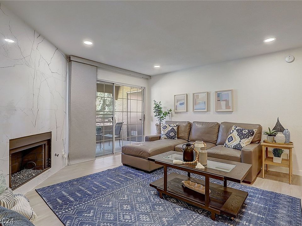 BEAUTIFULLY RENOVATED CONDO LOCATED IN THE EXQUISITE, HIGHLY DESIRABLE RESIDENCE AT CANYON GATE THAT'S A RESORT STYLE, GUARD GATED COMMUNITY! INSIDE YOU'LL FIND AN OPEN FLOOR PLAN WITH AMPLE NATURAL LIGHT PROVIDED IN THE LIVING AND DINING AREAS THAT OPEN UP TO THE KITCHEN! GET COMFORTABLE IN FRONT OF YOUR FIREPLACE WITH A LARGE FORMAT DESIGNER TILE WALL OR RELAX ON YOUR COZY BALCONY OVERLOOKING THE PICTURESQUE COURTYARD! TWO PRIMARY BEDROOMS EACH THEIR OWN PRIVATE BATHROOMS! BOTH BATHROOMS HAVE WALK-IN SHOWERS THAT SHOWCASE SEAMLESS GLASS AND MOSAIC TILE DESIGNS! THE KITCHEN HAS UPGRADED CABINETS, QUARTZ COUNTERTOPS, TILE BACKSPLASH AND STATINLESS STEEL APPLIANCES! THE FABULOUS AMENITIES INCLUDE A CLUBHOUSE, FITNESS CENTER, RACQUETBALL & HANDBALL COURT, INDOOR SPA, DRY SAUNA, THREE POOLS AS WELL AS BASKETBALL AND TENNIS COURTS! IDEAL LOCATION TO ENJOY SUMMERLIN'S FINEST RESTAURANTS, SHOPPING AND RECREATIONAL ACTIVITIES WHILE HAVING CONVENIENT ACCESS TO FREEWAYS!