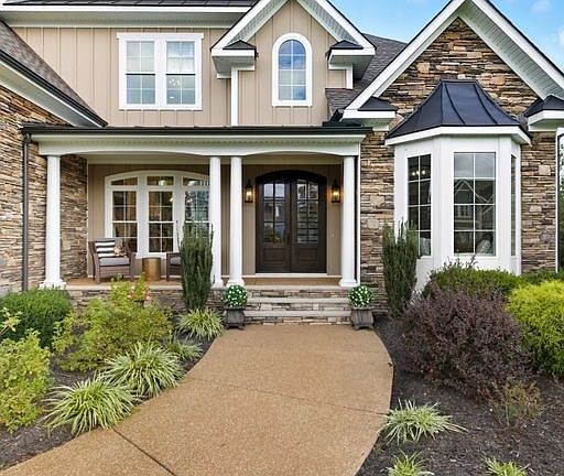 Stone fireplaceFirst floor primary suiteJuliet balcony overlookSpacious loft areaPrivate retreatSoaring family roomImpressive design