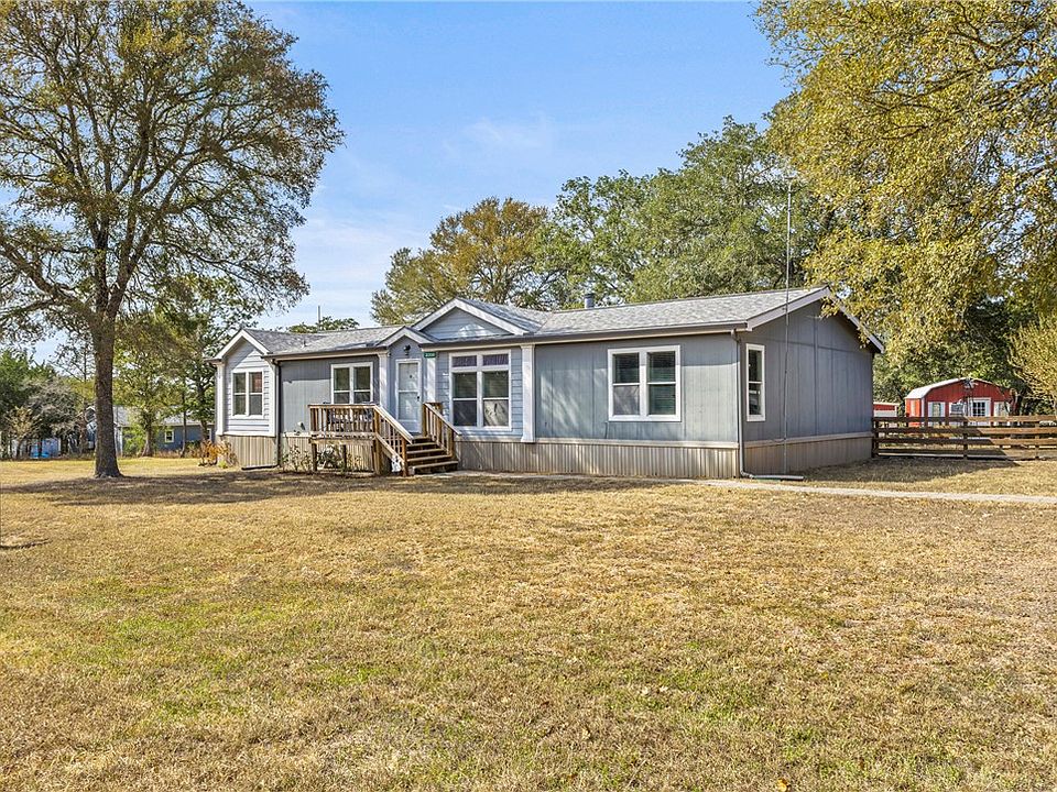 Exterior improvements include front and rear covered porches, a partially fenced yard, and two separate workshop buildings, both suitable for storage, equipment, or hobby use. The property is served by well water and a septic system and is situated on a quiet street within Beaver Creek, a deed-restricted community with low annual HOA fees and access to stocked ponds and subdivision greenbelts. Located within the Snook ISD and approximately 30 minutes from Bryan-College Station, this property offers a balance of rural living with access to city conveniences.