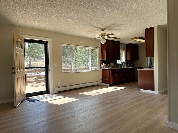 Recently renovated home in an excellent location. Wonderful decks overlooking Estes Valley and the Big Thompson River. The majority of the home was renovated last year. Main floor of the home has 3 bedrooms, 2 bathrooms, kitchen, living room, and laundry room. The Master is on the main level. The lower level is a great room with another 3/4 bath. It has a separate entrance and also goes out into the 2 car garage. Lot's of storage. This home is available on August 1st and we are willing to negotiate rental term.