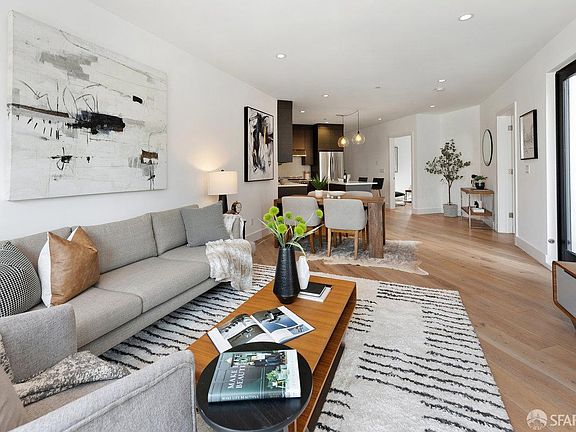 Sophisticated and contemporary, Residence 305 at The Century offers refined urban living in the heart of Duboce Triangle. Positioned on the quieter side of the building, this two-bedroom, two-bath condo enjoys serene neighborhood outlooks over 15th Street. The open floor plan features high ceilings, wide-plank oak floors, and oversized windows that fill the space with natural light. The chef's kitchen boasts a Bertazzoni gas range, Caesarstone countertops, custom cabinetry, and an inviting island that seamlessly connects to the living and dining areas. A private balcony extends the living space, providing a peaceful retreat. The primary suite features a spacious walk-in closet with a custom closet system and a spa-like en-suite bath with modern finishes and a walk-in shower. The second bedroom offers flexibility for guests or a home office, while the second bath boasts a sleek floating dual vanity and a shower-over-tub. Thoughtful storage solutions include a large in-unit storage/utility closet with built-in organizers, as well as an additional dedicated storage. In-unit laundry and one-car garage parking complete the home. Residents enjoy access to a rooftop deck with panoramic city views, all within a boutique 2014 elevator building steps from the Castro and Mission Dolores.