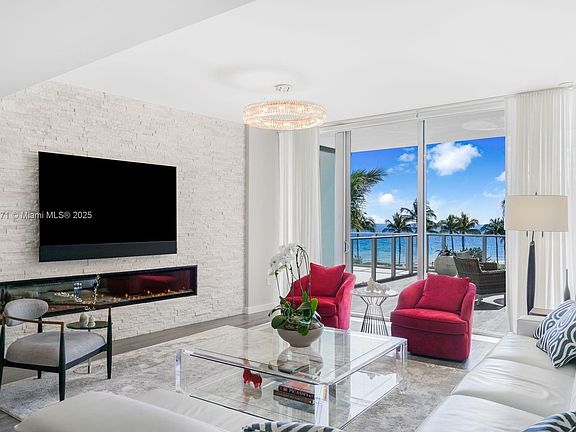 Welcomed by a private elevator and foyer, this 2,666 sq ft, light-infused 3-bedroom, 3.5-bathroom designer-finished home at Auberge Beach Residences features an expansive flow-through floor plan unlike any other. The oversized kitchen is connected to both an informal living and dining area, as well as a formal living room with bar seating and a tall double wine cooler. Two oversized terraces totaling 1,690 sq ft provide the perfect setting for entertaining, while soaking in the ocean and tropical views. Custom lighting and chandeliers, along with a built-in fireplace and striking stone accent wall, deliver year-round sophistication. As the jewel of Fort Lauderdale, Auberge offers amenities that include world-class oceanfront dining at Dune, a state-of-the-art fitness center, pools, etc.