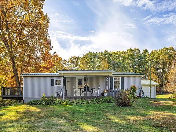 Own a piece of paradise here! 4.9 level acres within .7 miles of the boat launch! Newer gas forced air furnace, hot water heater and central air. Newer roof, Pellet stove in game room. Huge eat-in kitchen with bump out bay window, walk-in pantry, newer vinyl plank flooring in kitchen, living room and hallways. Front and side covered decks to enjoy the property views from. 24'x20' 3 stall barn with access to 1 acre fenced in pasture, 36x18 open barn previously rented for boat storage, 8'x8' craft shed, 12'x10' wood storage shed, Two 24'x24' detached garages,