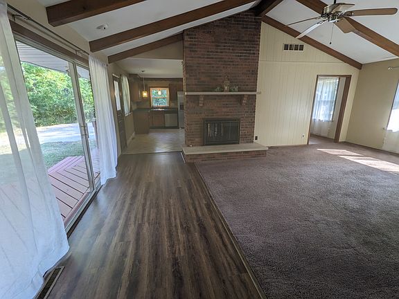 Three bedroom, 2 1/2 bath brick ranch in quiet neighborhood of well kept homes. Ten minutes from downtown. Wooded private back yard, new deck, new roof, vaulted ceiling in living room, see-thru fire place between kitchen and living room, new windows, new Pergo, new paint, subway tile in kitchen. Hardwood floors in all bedrooms and hallway. Full unfinished basement with washer and dryer hook up. Two car attached garage. Renter is responsible for lawn care and upkeep of landscaping and snow removal. No smoking. Rent is due on first day of month. First month's rent plus damage deposit due before occupancy.