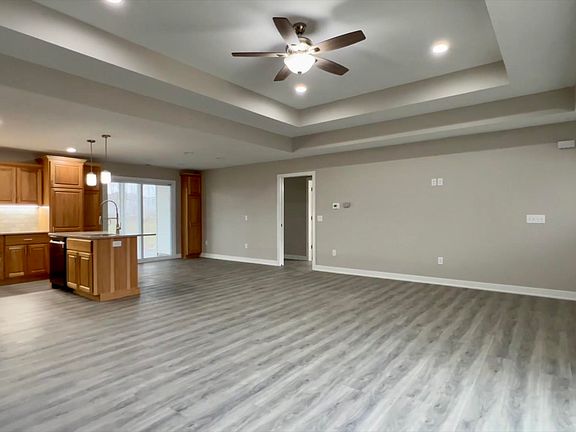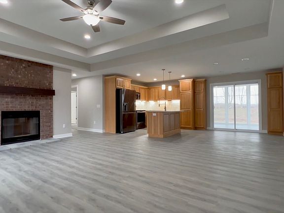 Beautifully crafted 3 bed, 2 bath ranch with a split bedroom floor plan. Luxury Vinyl Flooring throughout the house, with carpet in the bedrooms. Tray ceilings in the Living Room and Owner Suite. Wood burning fireplace in the living room. Custom Hickory cabinets with soft shut drawers, Quartz countertops, and white subway tile backsplash. There is a three seasons room off of the kitchen and owners suite. Large walk-in closet and walk-in tile shower. Three car attached garage as well. Close to trails, shopping, and dining.